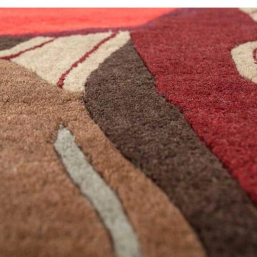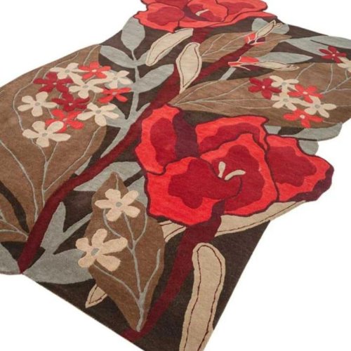 Red Floral Brown Leaf Design Hand Tufted Area Rug