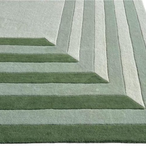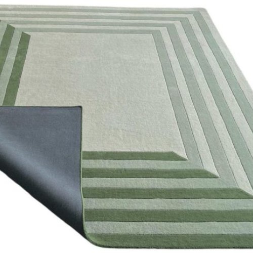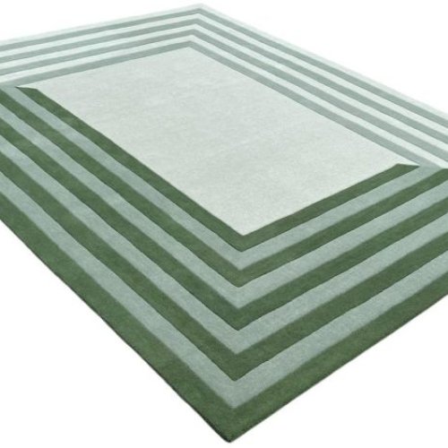 Concentric Square Geometric Green Shade Hand Tufted Area Rug