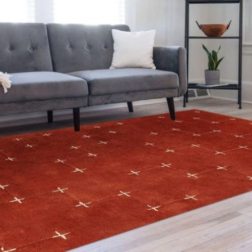 Rust Red Minimalist Cross Pattern Hand Tufted Area Rug
