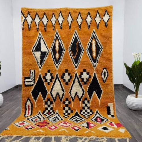 Orange Tribal Geometric Diamond Hand Knotted Moroccan Rug