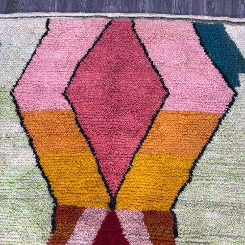 Abstract Geometric Diamond Multi Color Hand Knotted Moroccan Rug