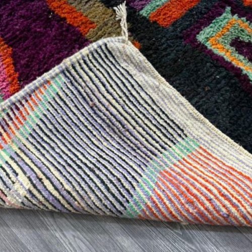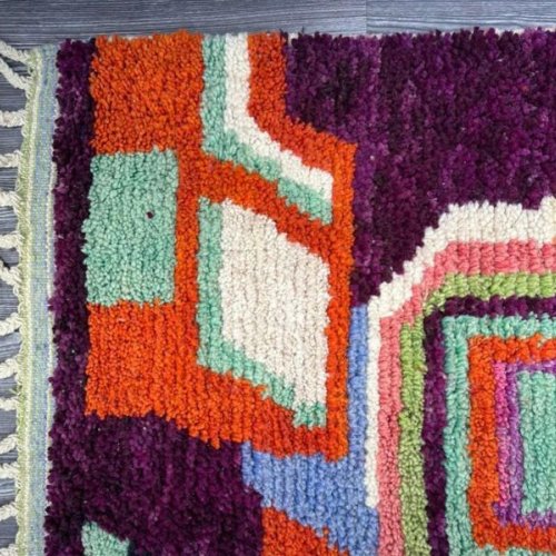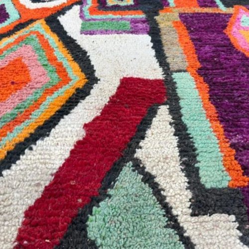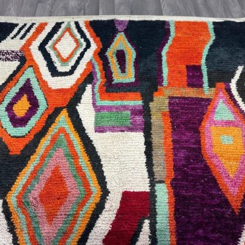 Vibrant Abstract Geometric Diamond Hand Knotted Moroccan Rug