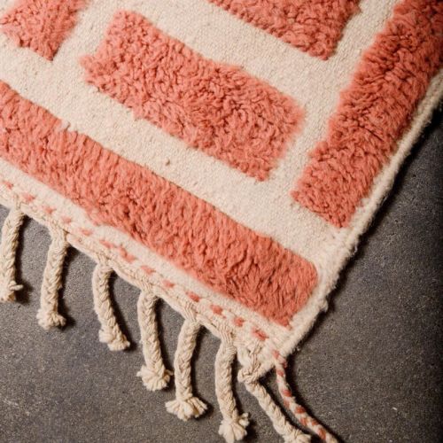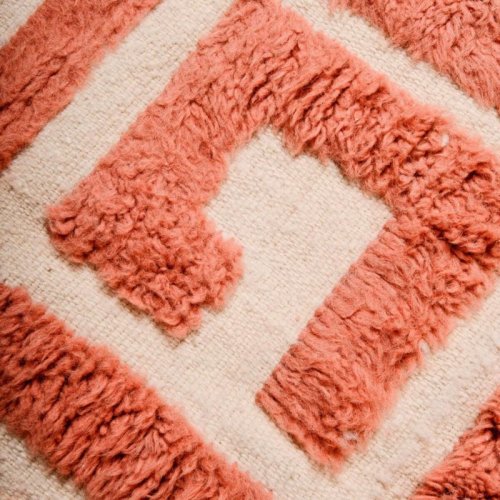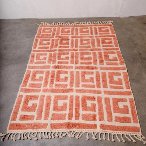 Peach Geometric Maze Pattern Hand Knotted Moroccan Rug