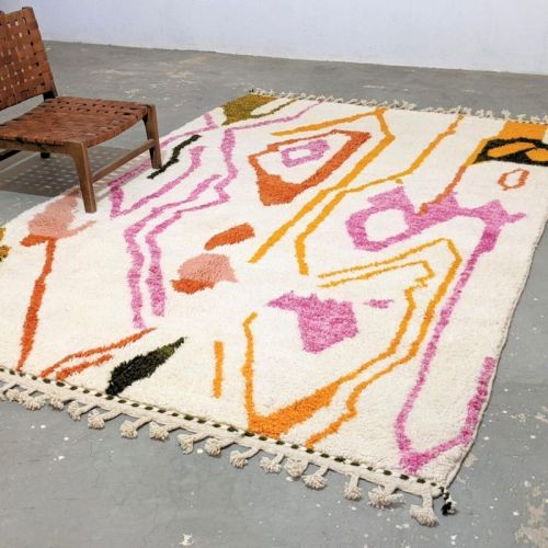 Abstract Geometric Line Art Hand Knotted Moroccan Rug