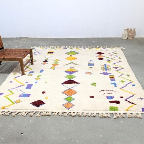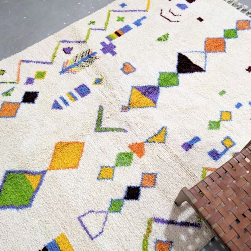 Abstract Geometric Multi Color Hand Knotted Moroccan Rug