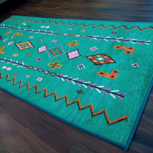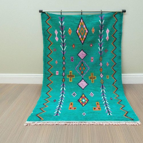Vibrant Tribal Geometric Green Hand Knotted Moroccan Rug