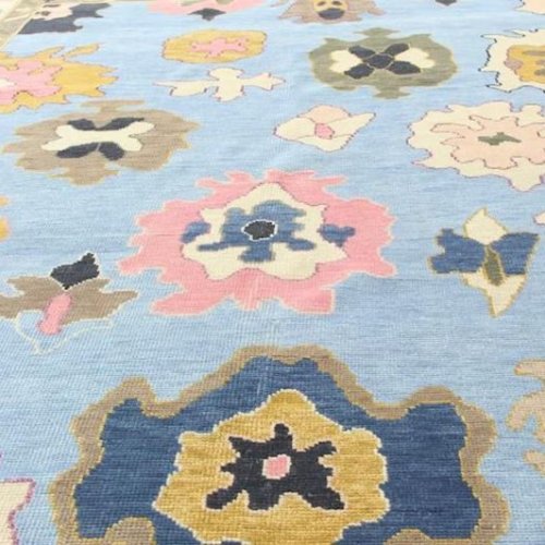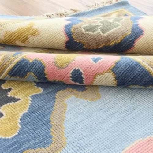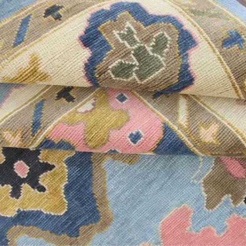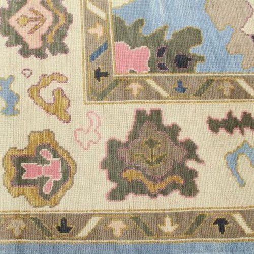 Abstract Floral Medallion Blue Hand Knotted Rug