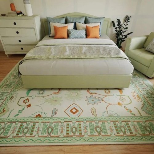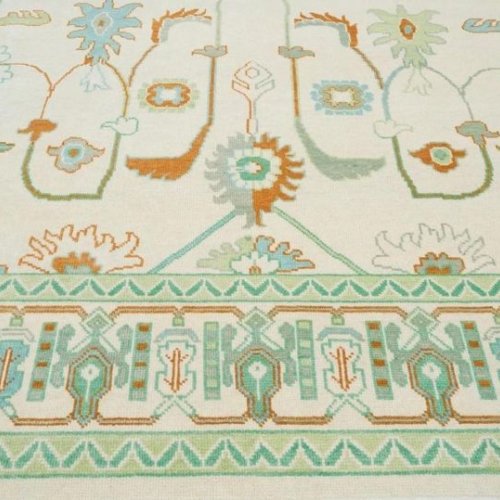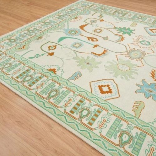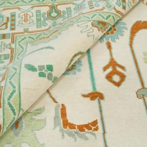 Abstract Topographic Green Hand Knotted Rug