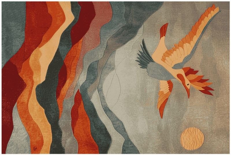 | Pattern | Abstract, Landscape (Mountains, Sun, Bird) |